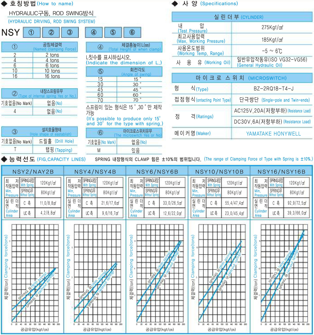 - SLY NON-TOUCH CLAMP는 CYLINDER에 의해 T-SLOT상에서 짧은 거리를 이동(전,후진)하는 CLAMPING LEVER식 EKSEHD SPRING복귀형 CLAMP로써 금형폭이 거의 일정하다는 전제하에서 사용되며 STROKE의 증가에 따라서 비표준화된 금형(단, DIE PLATE의 높이는 제외)을 사용할 수 있습니다.